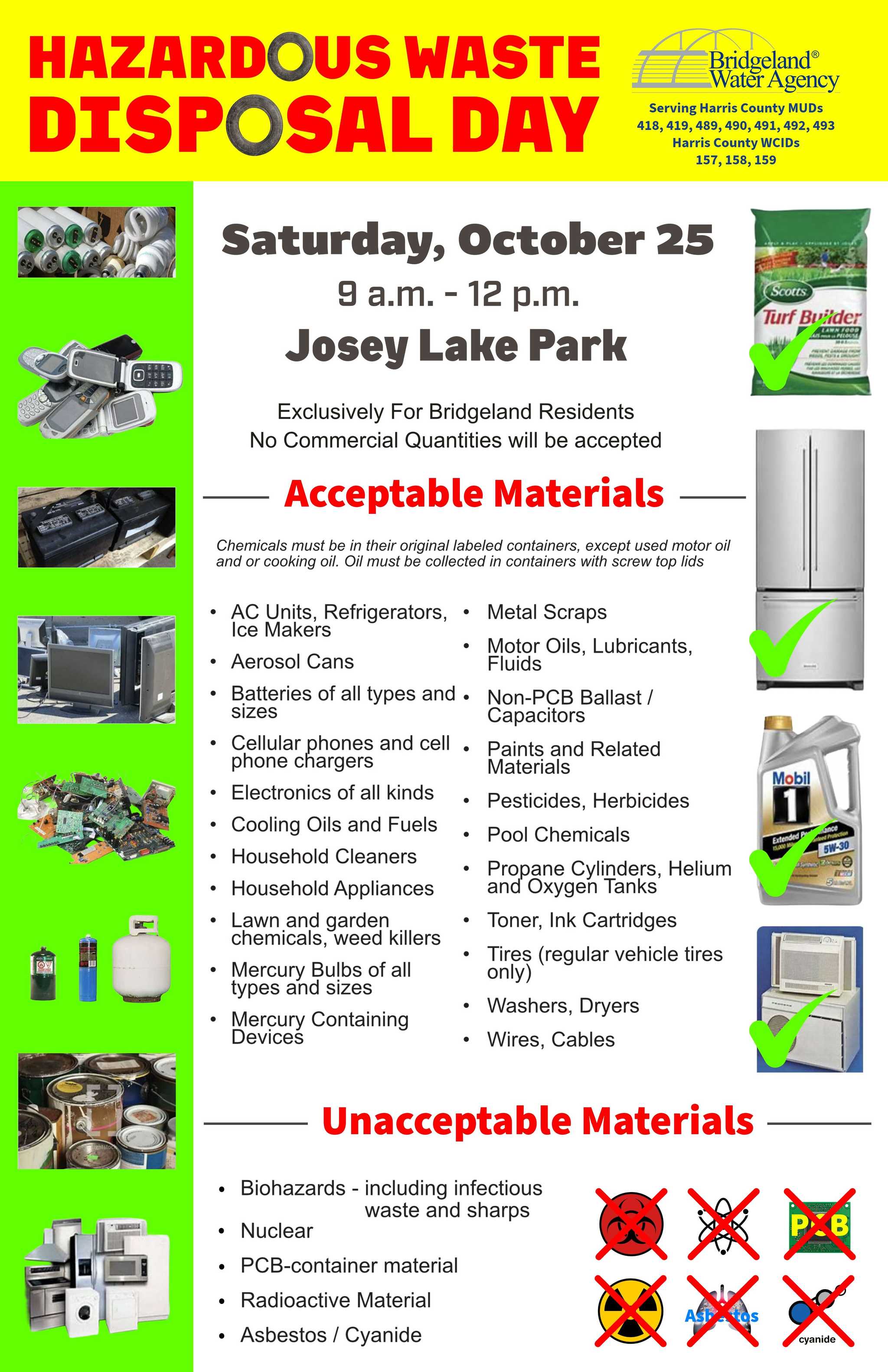 Hazardous Waste Disposal Day: October 25 at Josey Lake Park